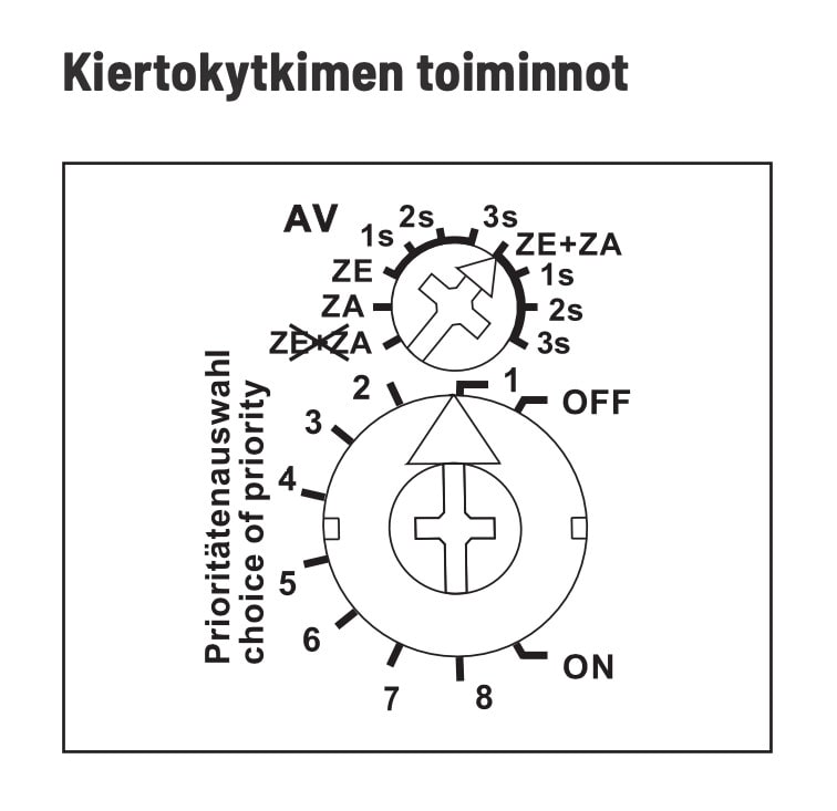 - Merkkivalon virta ohjausjännitteen ollessa vähintään 110V, on korkeintaan 50mA kiertokytkimen asennoissa 1-3 ja 5-7.