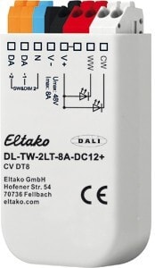 Suunniteltu ohjaamaan vakiojännitteisiä LED-moduuleja (CV) käyttöjännitteillä 12V - 48V, käyttötila DT8: säädä kirkkautta ja värilämpötilaa DALI-osoitteella (laitetyyppi 8, värityyppi Tc).