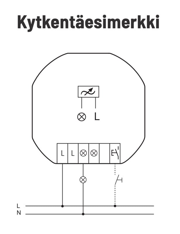 Himmentimessä on myös johdollisen painikkeen tulo, jolloin langattomalla painikkeella ohjauksen lisäksi, tätä langatonta himmennintä voidaan ohjata myös millä tahansa perinteisellä johdotetulla jousipalautteisella 230V painikkeella.