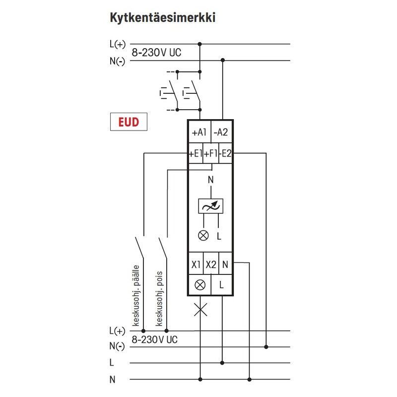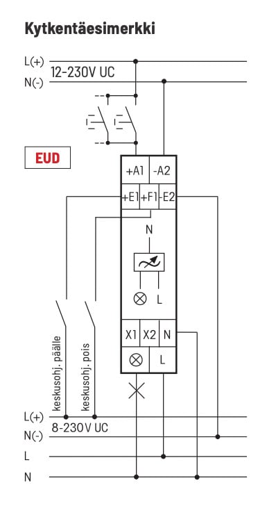 Yleishimmennin kuten EUD, mutta himmennys ylös/alas kahdella erillisellä suuntapainonapilla. Keskusohjattavissa yleisistä jännitetuloista (8-230 V UC).
