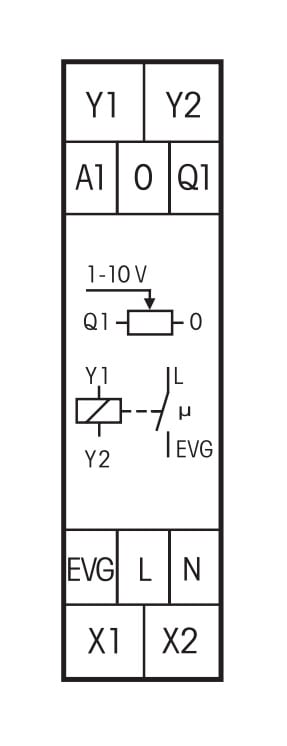 Se kytkee elektronisen liitäntälaitteen tai muuntajan, joka on kytketty EVG-lähtöön, bistabiilin releen avulla.