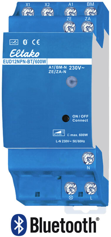 Monitoimi yleishimmennin jossa integroituna myös astro-kellokytkin. Bluetoothilla, ohjelmointi Eltako Connect appilla. LED-kuorma maks. 600W. Ohjaus painikkeella, erillisillä suuntapainikkeilla, keskusohjauspainikkeilla ja liiketunnistimilla. Monitoiminen yleishimmennin jossa integroituna myös astro-kellokytkin. Bluetoothilla, ohjelmointi ilmaisella suomenkielisellä Eltako Connect appilla. Asennus DIN-kiskoon. Kuormankesto on kasvatettavissa entisestään LUD12 tehoyksikön avulla liittimistä X1 ja X2.