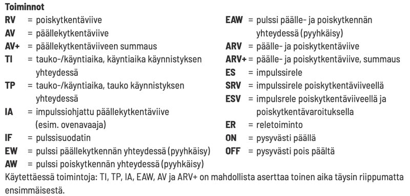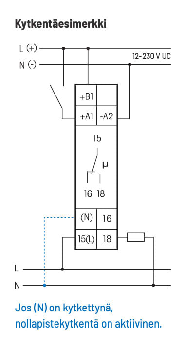 - Yleinen ohjausjännite 12-230V AC/DC, ohjausjännite on sama kuin käyttöjännite.