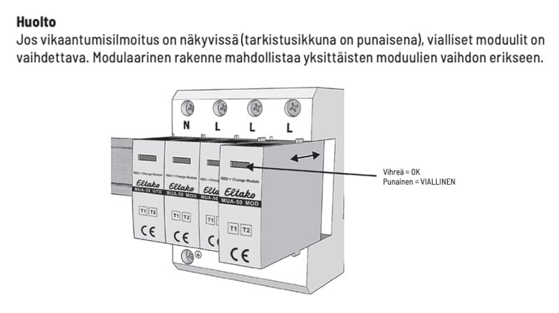 ELTAKO - Ylijännitesuojapatruuna - Varaosamoduuli MUA-50, Vaihe