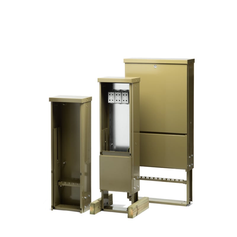 304 mm leveä tyhjä kaappi, vihreä RAL7008. Sisältää metalliset jalustan tuet, kolmiokaralukon sekä oven ja etupaneelin maadoitukset.
