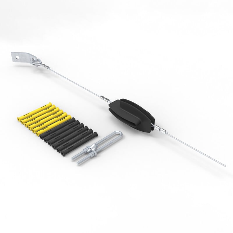 16,5 m, haruseristin, harusrauta, kiilakiristin Täydelliset harussarjat helpottavat pylväiden harustamista. Sarjasta löytyvät kaikki tarvikeet harustamista varten, eikä raskasta harusköysinippua tarvitse käsitellä työmaalla. Harussarjan pituus tarkoittaa aina pituutta pylvään ja laattasilmuksen välillä asennusvarat huomioiden. Lukollisissa sarjoissa on huomioitu vaijerin pituudessa kaksi kierrosta pylvään ympäri.