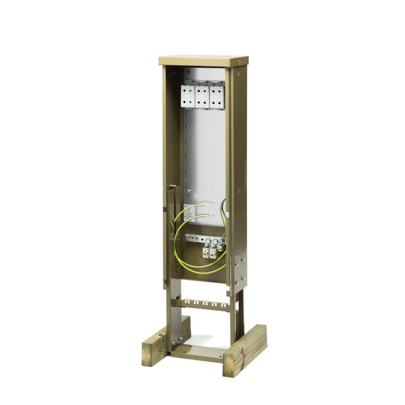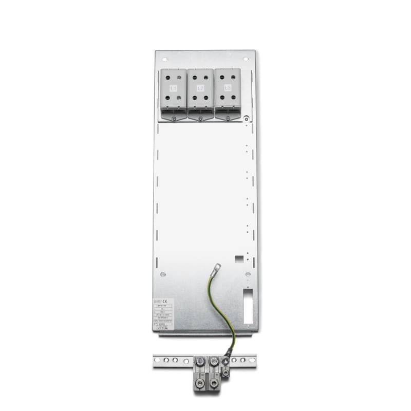 Asennuslevy 35-240 mm² kaapeleille eCab3 kaappiin, sisältää maadoituskiskon yhdellä KE52.2 (16-95 mm²) sekä kahdella KE54.2 (35-240mm²) liittimellä.