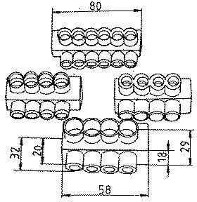 Liitinsarja sisältää kolme KE10.1-liitintä, yhden KE10.3-liittimen ja 0,35 m pituisen kaapelikengällä varustetun 16 mm² maadoitusjohtimen.
