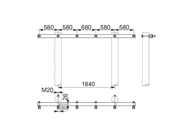 Käytetään tuplajohdon päättämiseen vaihevälin ollessa 580 mm.