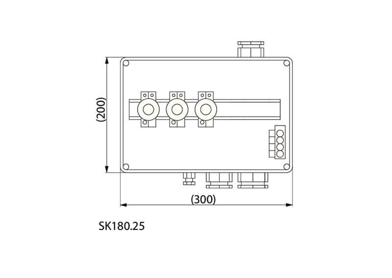 Talovarokekotelo sisältää irtoliittimen (50 mm²) ja seuraavat holkkitiivisteet (kaapelin halkaisija suluissa mm): 1 kpl M50 (30-38), 1 kpl M40 (22-32), 1 kpl M25 (13-18) ja 1 kpl M16 (5-10). Kotelon leveys on 300 mm, korkeus 200 mm ja syvyys 130 mm.