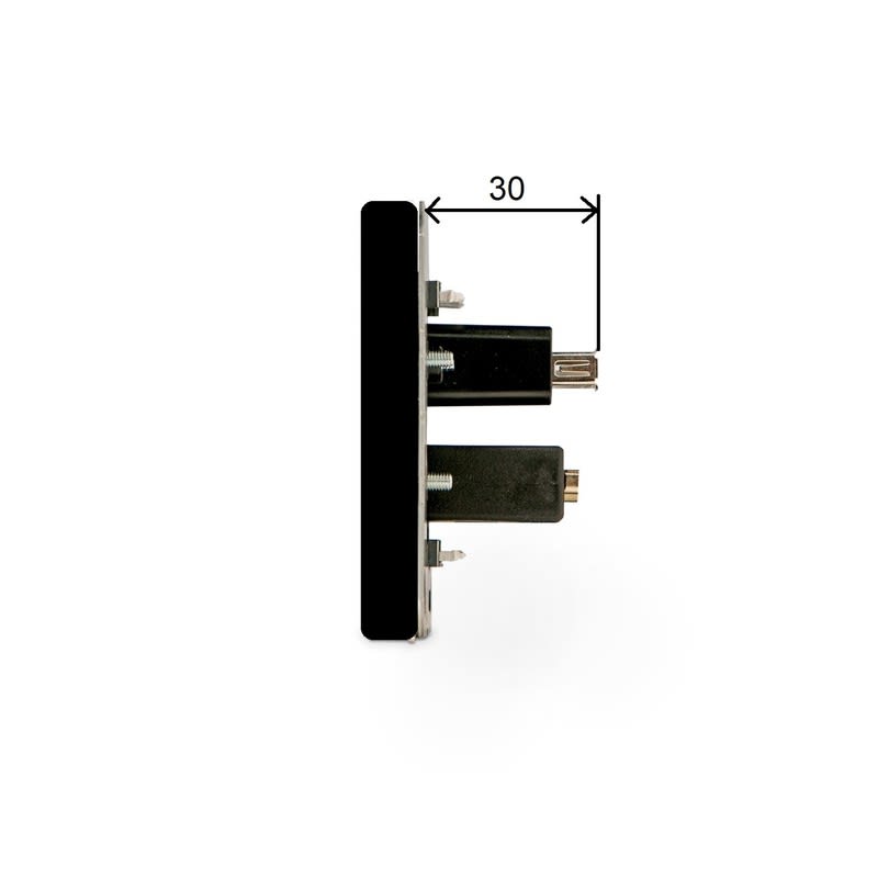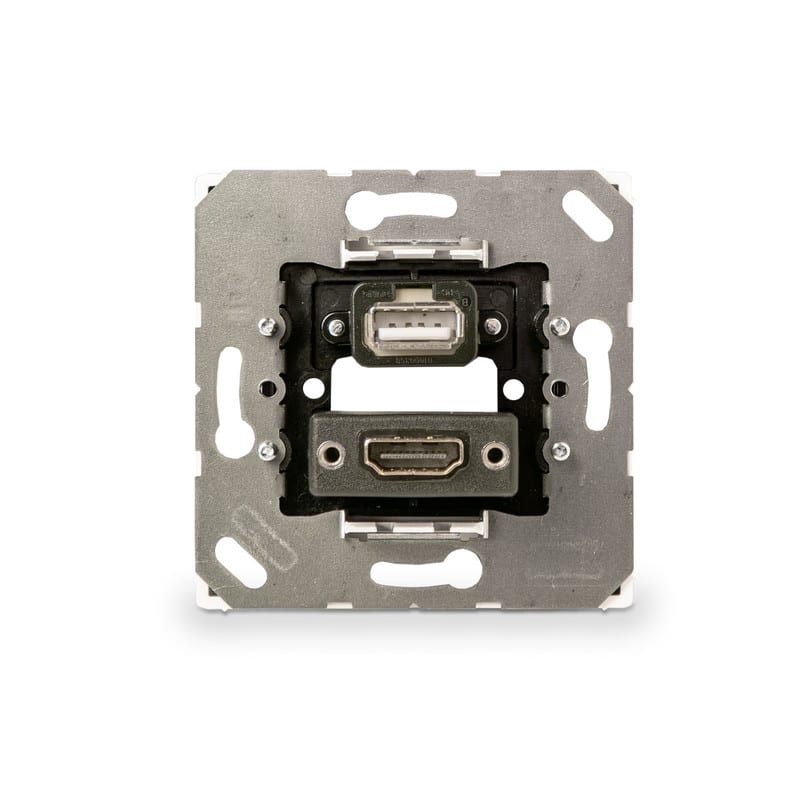 Uppoasennettava HDMI/USB 2.0 -jatkoliitin. HDMI-liitin: Standardi HDMI 2.0a. Videoformaatti: 4K @ 50/60 Hz, Full HD @ 48 Hz 3D, HDR Video. Liitin: HDMI™ type A, 180°. Kullatut liitinkontaktit. Upotussyvyys 30 mm. Varmista riittävä tila liitettäville kaapeleille. Sisältää asennuskehyksen.