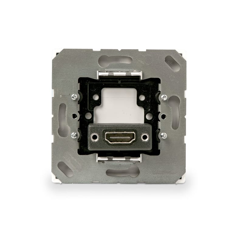 Uppoasennettava HDMI-jatkoliitin. Standardi: HDMI 2.0a. Videoformaatti: 4K @ 50/60 Hz, Full HD @ 48 Hz 3D, HDR Video. Liitin: HDMI™ type A, 180°. Kullatut liittimet. Upotussyvyys 25 mm. Varmista riittävä tila liitettävälle kaapelille. Sisältää asennuskehyksen.