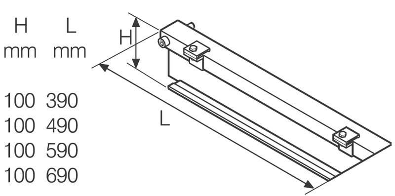 Kiinnitetään SYS-NSR28 (14 415 03) seinäkiskoon tai SYS-NSB17 (14 415 00) tukiripustuskiskoon.