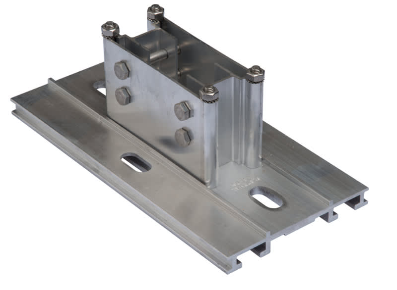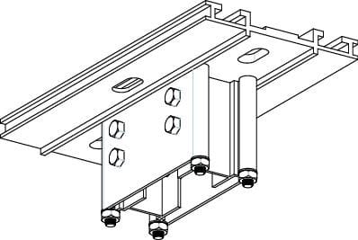 Kiinnike kattoon ripustuskiskolle SYS-NSB28. Kuormitettavuus 28 kN.