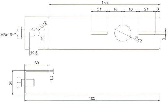 Kojekiinnitysalusta M8 tai M10 kierretankoon. Kojekiinnitysalustaan voidaan kiinnittää erilaisia kevyitä laitteita, esim. palohälytin.