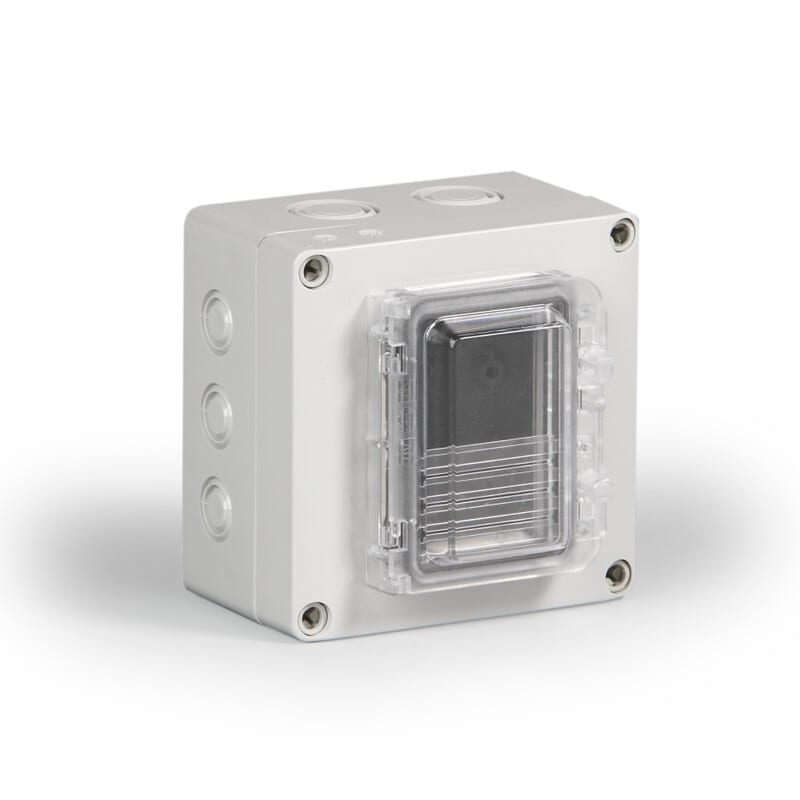 Ensto Cubo R -sarjan moduulikoteloita on saatavilla sileäsivuisina tai aukkoaihioilla varustettuina. Kotelot on varustettu saranoiduilla ikkunoilla.