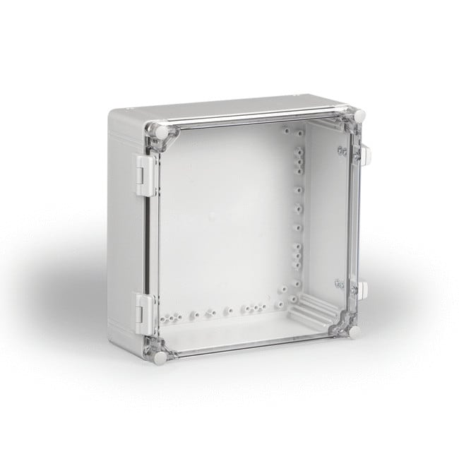 Koko 300 x 300 x 132 saranoilla ja lukitussalvoilla, kirkas kansi, PC
