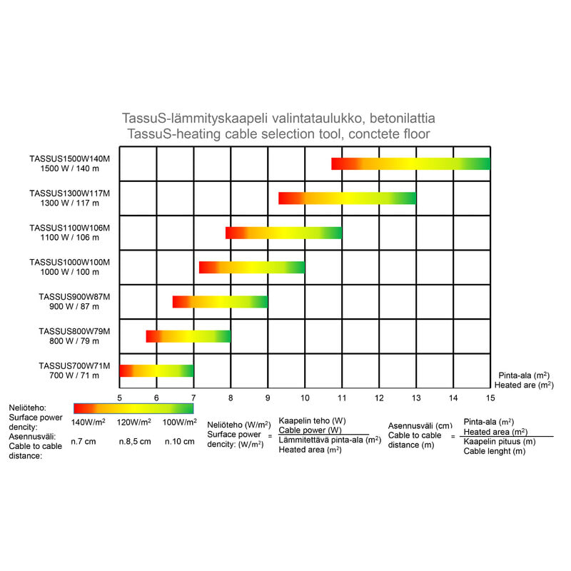 Tassu S on vahva lattialämmityskaapeli pääasiassa saneerauksiin, osittain varaavaan tai jatkuvaan lattialämmitykseen. Kaapeli kuuluu mekaaniselta kestävyydeltään vahvempaan luokkaan M2, joten sen voi asentaa suoraan raudoitusverkkoon. Mutta se sopii myös muihinkin rakenteisiin esim. ohuisiin lattiarakenteisiin lähelle lattian pintaa, jolloin lämmön siirtyminen huoneilmaan on nopea. Pintamateriaalina voi käyttää esim. parkettia, laminaattia tai klinkkeriä. Suositeltu neliöteho on 60–140 W/m².