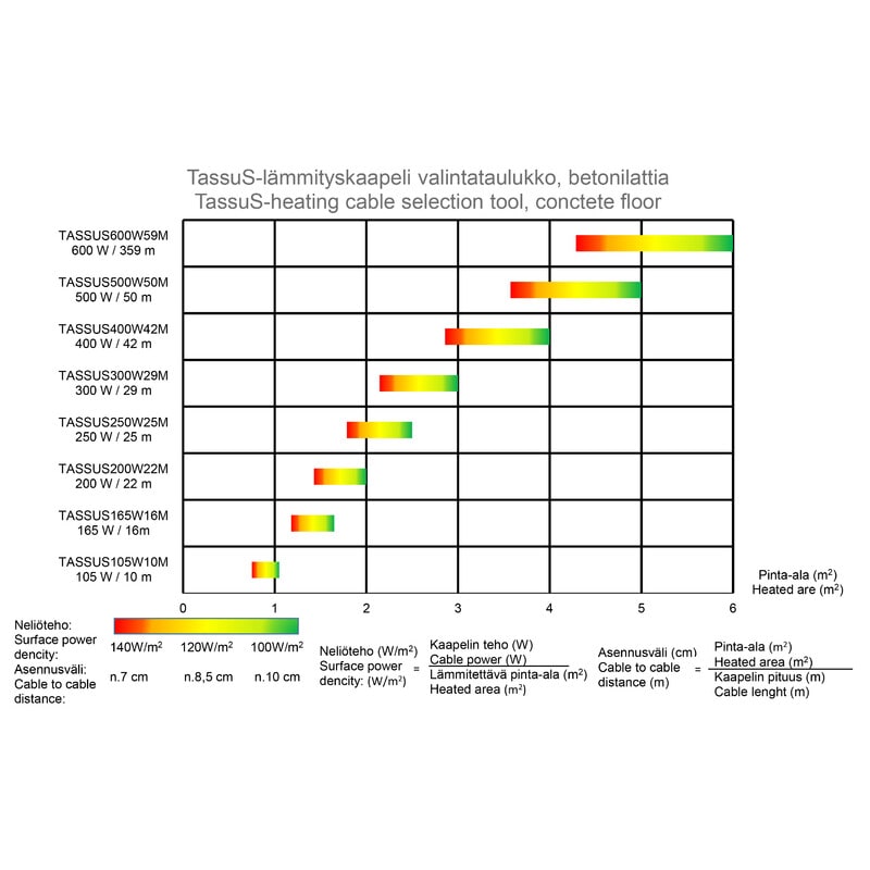 Tassu S on vahva lattialämmityskaapeli pääasiassa saneerauksiin, osittain varaavaan tai jatkuvaan lattialämmitykseen. Kaapeli kuuluu mekaaniselta kestävyydeltään vahvempaan luokkaan M2, joten sen voi asentaa suoraan raudoitusverkkoon. Mutta se sopii myös muihinkin rakenteisiin esim. ohuisiin lattiarakenteisiin lähelle lattian pintaa, jolloin lämmön siirtyminen huoneilmaan on nopea. Pintamateriaalina voi käyttää esim. parkettia, laminaattia tai klinkkeriä. Suositeltu neliöteho on 60–140 W/m².
