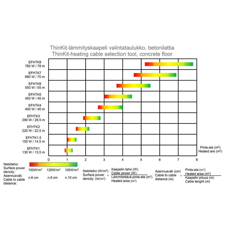 ThinKit on ohut lattialämmityskaapeli kuiviin ja kosteisiin tiloihin. Se on helppo asentaa pakkauksessa mukana tulevilla teipeillä, jos tila on pieni tai sokkeloinen. ThinKit pitää asentaa palamattomalle pinnalle tasoitteeseen. Koska kaapeli on ohut, lattian korotus voidaan pitää pienenä. Lattian pintamateriaalina voi käyttää esim. parkettia, laminaattia tai klinkkeriä. Pakkauksessa on lämmityskaapeli, kiinnitysteippiä ja termostaatin anturin asennusputki Ø13mm. Suositeltu neliöteho 60-150 W/m².