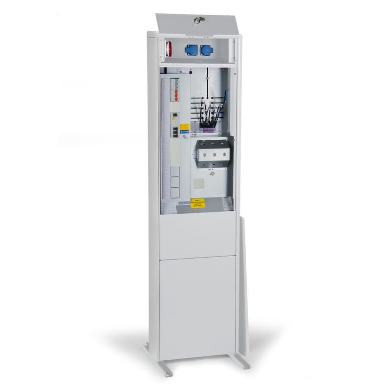 Ulkomittauskeskus kiinteällä jalustalla, pistorasioilla jajohdonsuojakatkaisijoilla