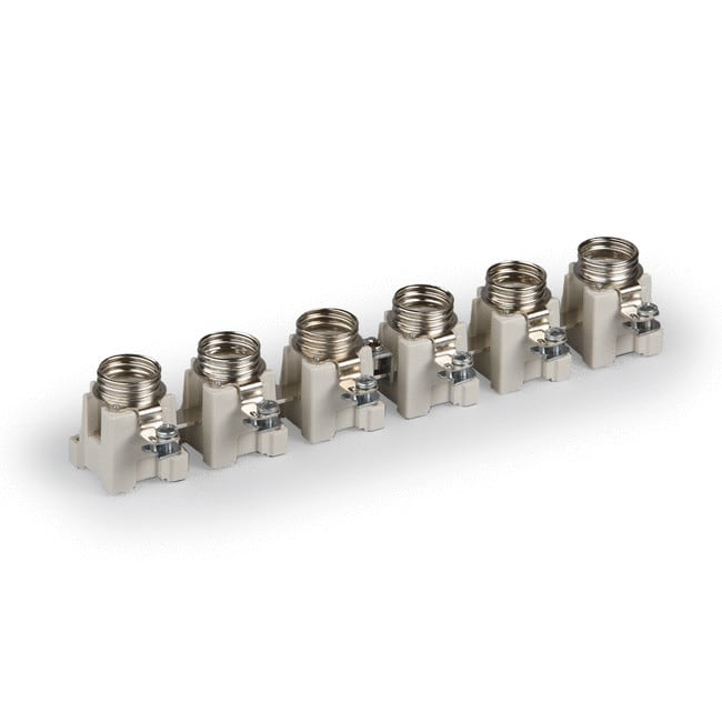 Keraamiset rivivarokkeet Diazed-varokkeille, koot DII (enint. 25A) ja DIII (enint. 63A).