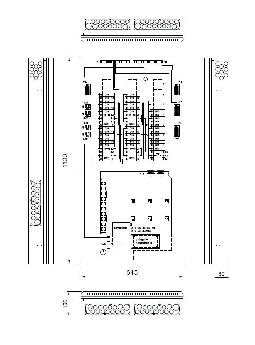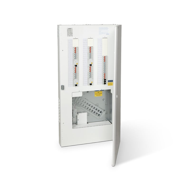 3-vaiheinen IT-ryhmäkeskus, jossa neljä 4-napaista 30mA vikavirtasuojakytkintä, 36kpl johdonsuojakatkaisijaa ja17 modulia varatilaa. Keskuksessa on helposti kytkettävät jousiliitäntäiset N- ja PE-liittimet. IT-tilassa on kaksi schuko-pistorasiaa sekä tilat antennihaaroittimelle tai -jaottimelle ja aktiivilaitteelle (esim. ADSL), paikat 20:lle RJ45-liittimelle ja irrotettava kuitukotelo, jossa on aihiot SC-duplex tai LC-quattro-liittimille.