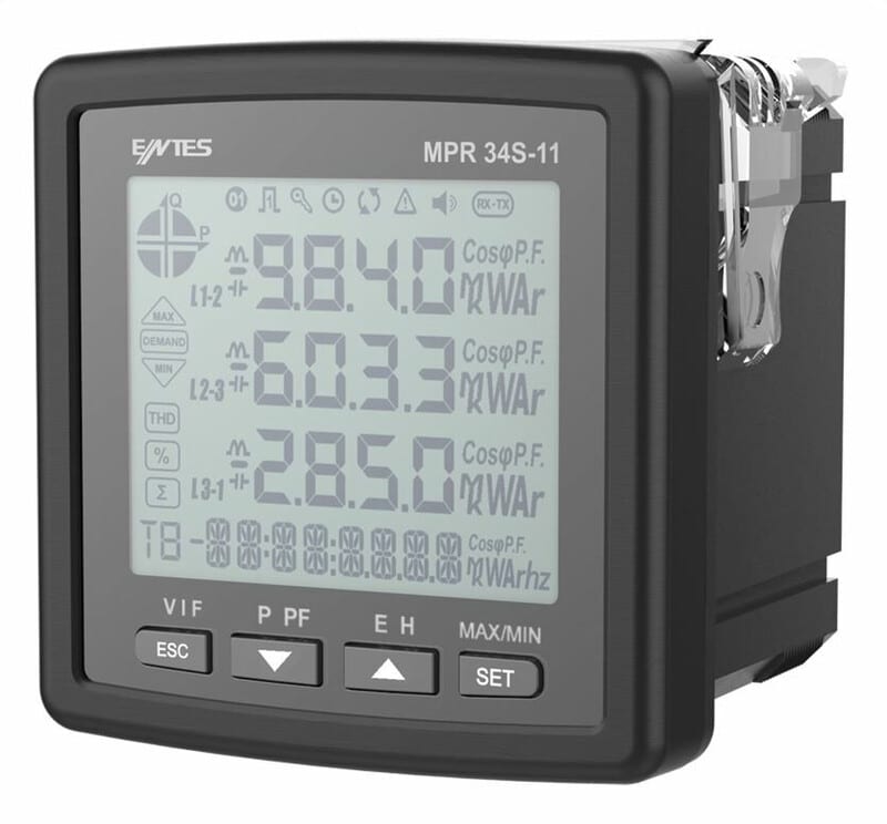 MPR-32-72 Sähkönlaatumittari, Mittaus.../5A virtamuuntajalla 0,05 – 10000A Mittaukset: • (VL-N) ja (VLL) • (IL1,IL2,IL3) ja IN • Taajuus, • W, VAr, VA, • P, Q, S, ΣP, ΣQ, ΣS, • Max., Min. • Cos φ • kWh, kVArh • Käyttötuntilaskuri (Nollattava) • Mittaus .../5A virtamuuntajalla 0,05 - 10000A