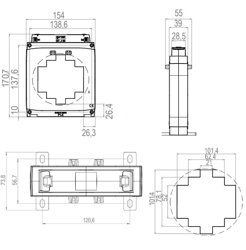 ENTES - Virtamuuntaja kiinteä - ENT.A100T 100x50 1500/5 10VA l