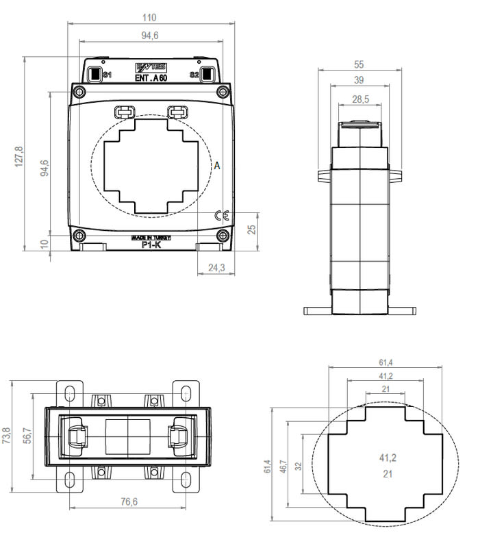 ENTES - Virtamuuntaja kiinteä - ENT.A60 300/5 2,5VA