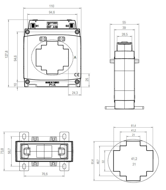 ENTES - Virtamuuntaja kiinteä - ENT.A60 500/5 2,5VA