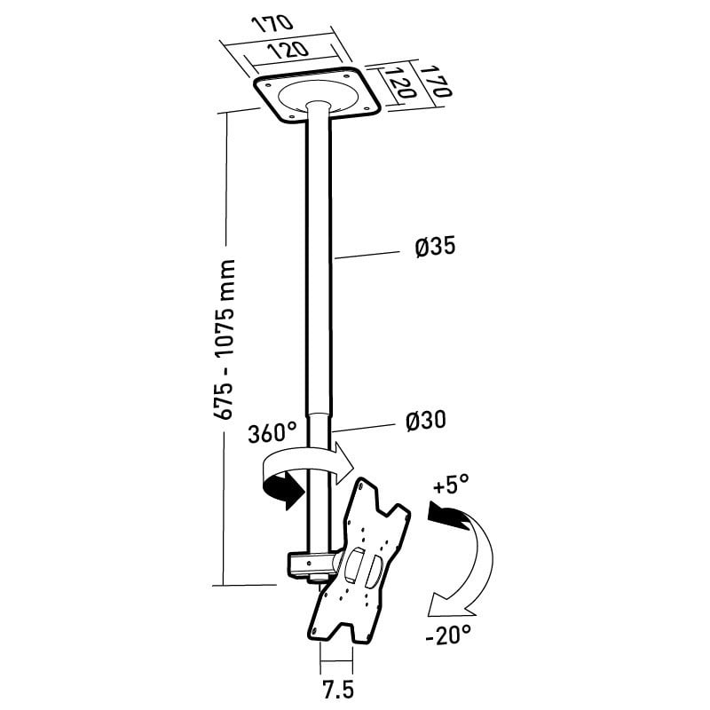 ERARD - AV-laite - kääntyvä kattokiinnike 19-43"