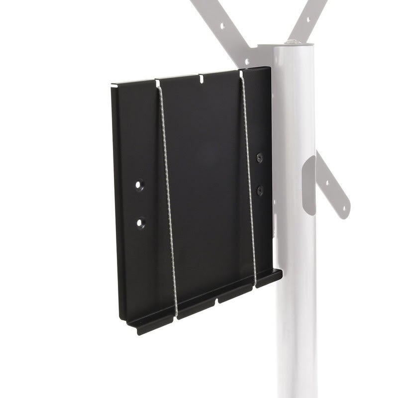 Näytön taakse sijoitettava oheislaitteiden pidike. Teline on käännettävissä sekä oikealle että vasemmalle.