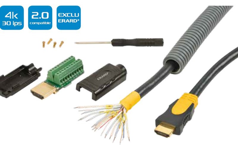 ERARD on kehittänyt käänteentekevän ratkaisun AV-integraatioprojektien kaapelikytkentöihin: erittäin joustavan, 5 metriä pitkän HDMI-kaapelin, jossa on valmiiksi kuoritut, numeroidut (1-20) ja tinatut kaapelin päät. Kaapelin vedon jälkeen asennettava HDMI-urosliitin mahdollistaa HDMI-kaapelien asennuksen 20 mm putkeen.