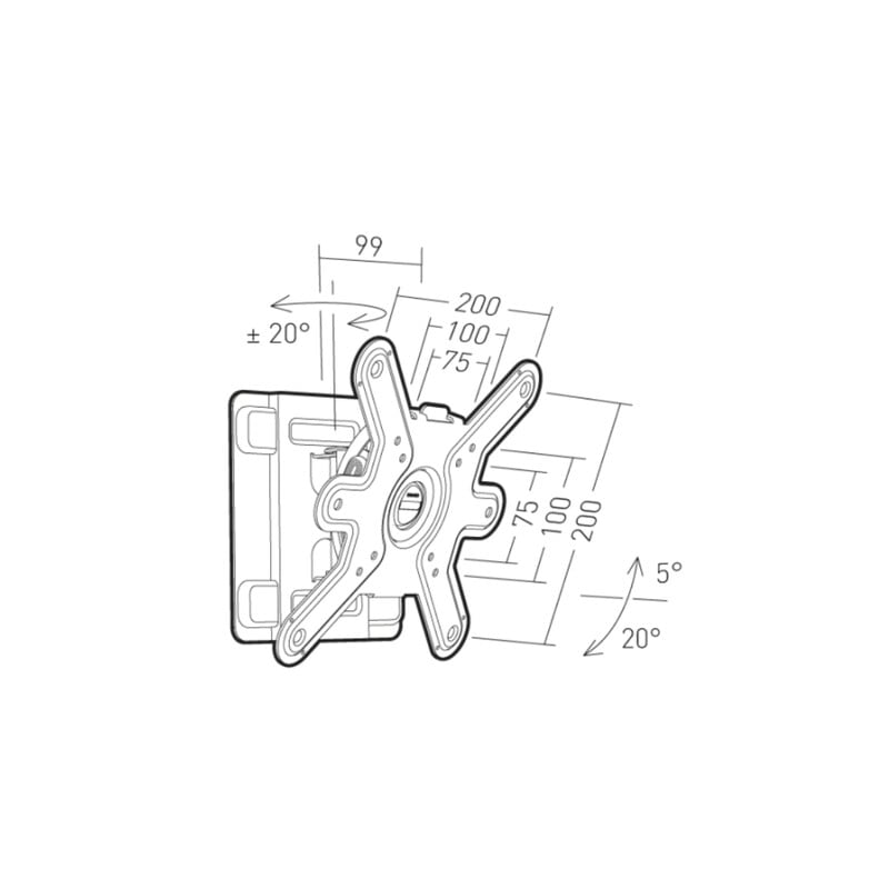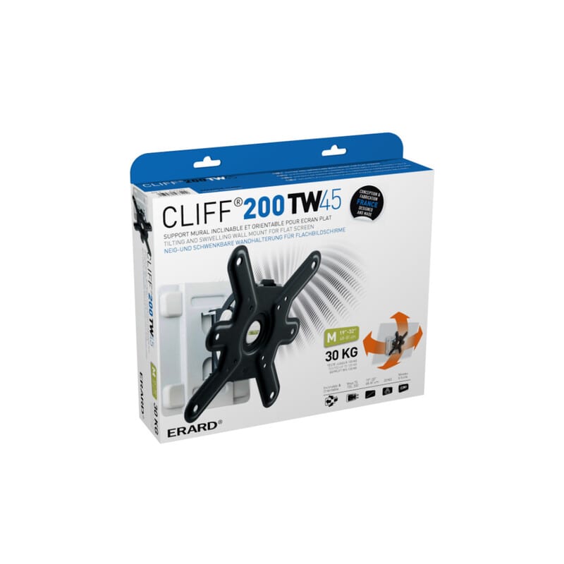 CLIFF 200 TWIST 45° säädettävä seinäkiinnike 19"-43" näytöille Kallistettava ja käännettävä seinäteline 19-43" -näytöille.