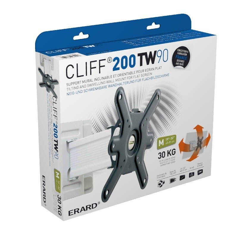 ERARD CLIFF 200 TWIST 90° Säädettävä seinäkiinnike 19"-43" näytöille