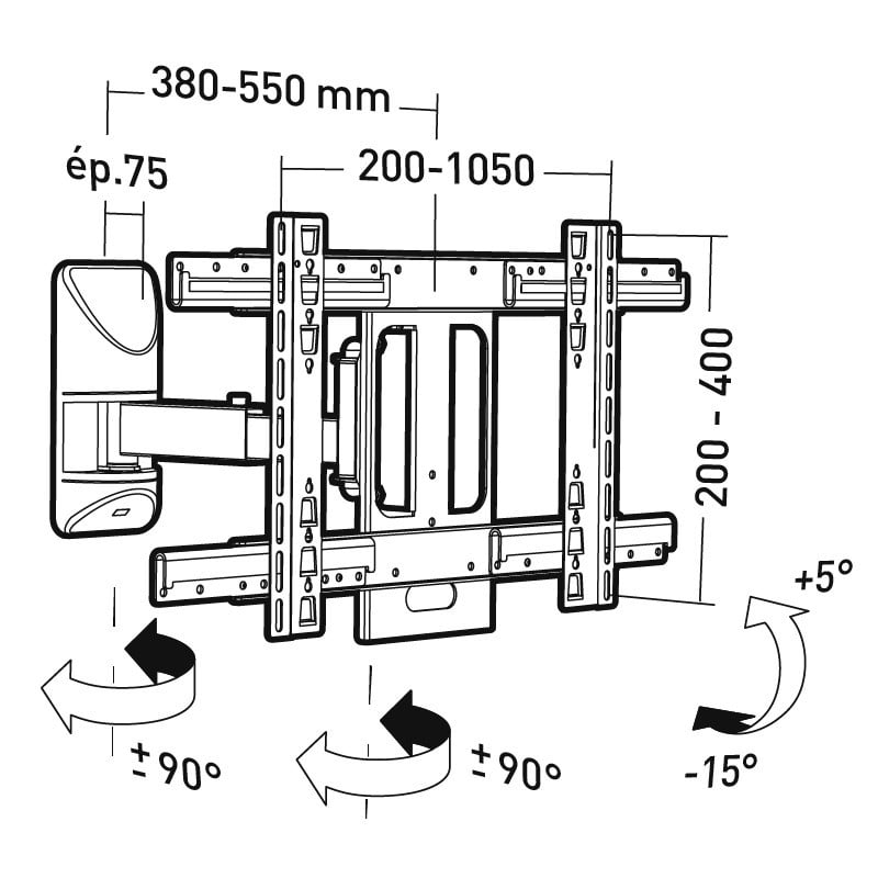 Kallistuva ja kääntyvä seinäkiinnike 40-85\" näytöille. Kapea seinälevy napa- tai nasta-asennusta varten.