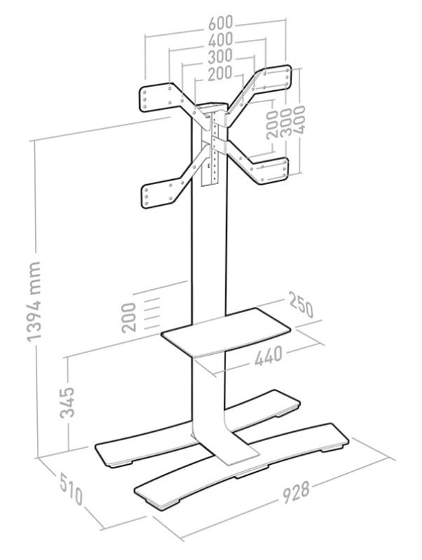 ERARD - Seinäteline - Jalusta 40-85" valk + hylly
