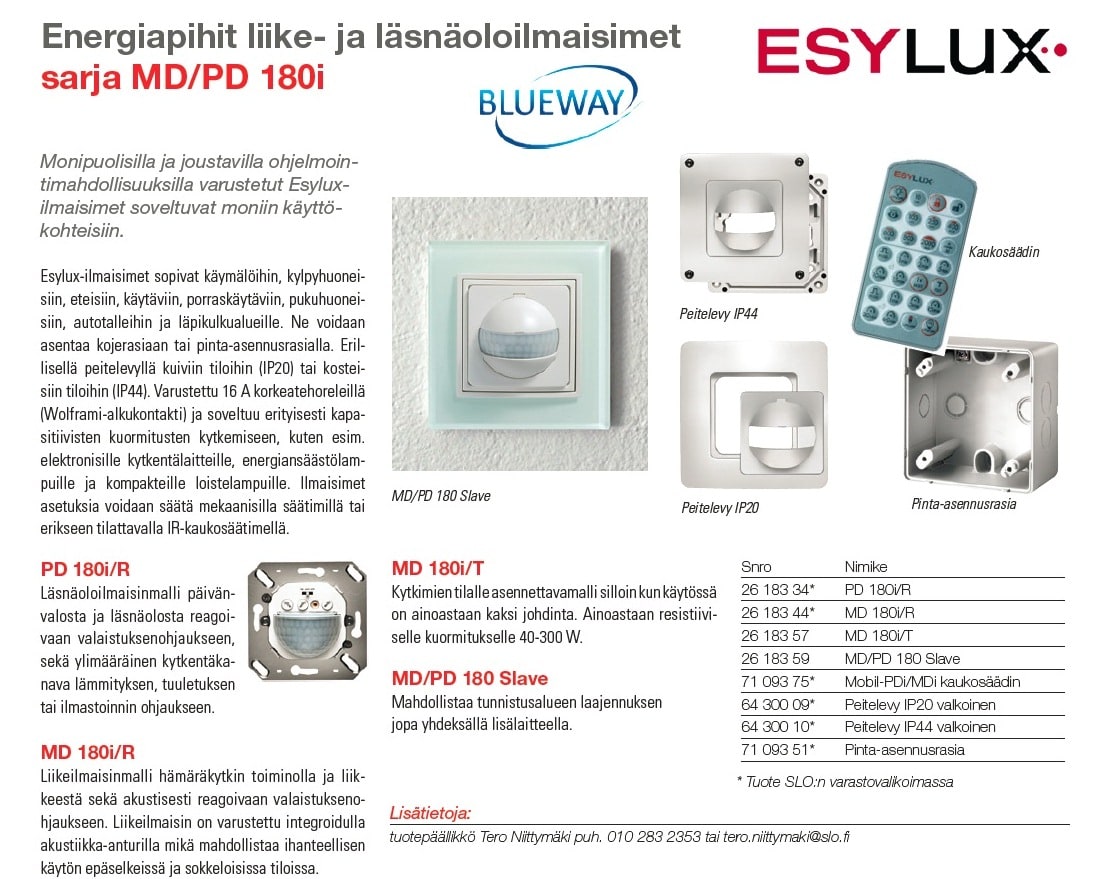 ESYLUX Suojus IP 20 tuotteille MD 180i ja PD 180i Yhdisteltävissä muihin nimekkäisiin kytkentäjärjestelmiin. Pystysuoran tunnistusalueen vaimentaminen mukana tulevalla suojuksella. Tekniset tiedot: Mitat n. korkeus 87 mm x leveys 87 mm x pituus 29 mm, Vär