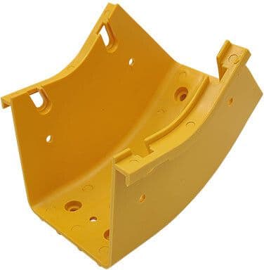 OptoKouru™-tuotesarjan 100x100 mm kourun 45° ylöskääntö. OptoYlös 45 liitetään toisiin osiin OptoJatkoksen avulla, johon OptoYlös 45 liitetään Sormimutterisarjalla (1 sarja/liitos).