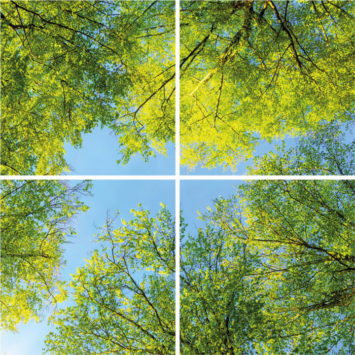 Valaisinsarja koostuu neljästä 600x600 moduulivalaimesta, ja sen koko on 1200 mm x 1200 mm.