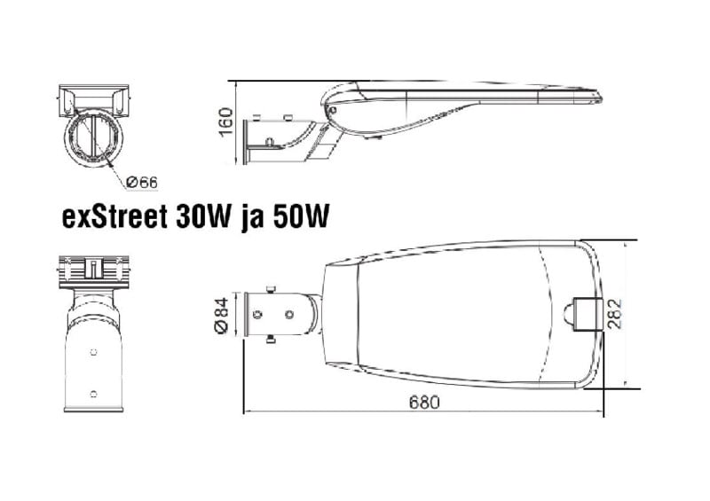 exStreet 50W 6000lm IP66 740 optiikka 01 harmaa/RAL9006 exStreet