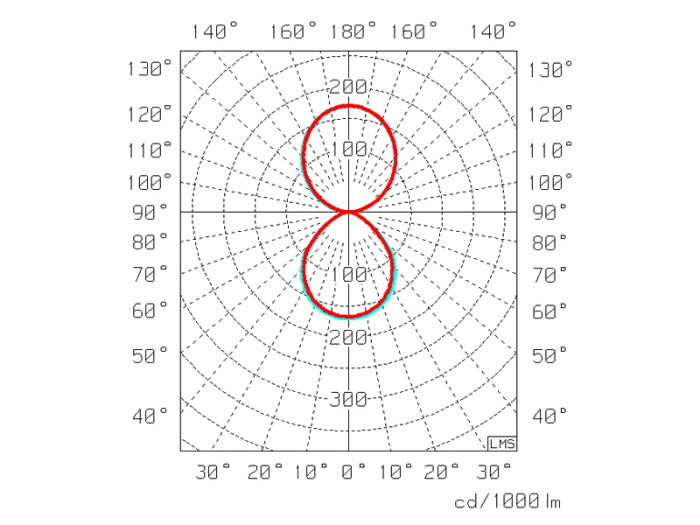 - valojakauma (F) 60 % / 40 % , (S) 45 % alas / 55 % ylös, sekä 100 % alas.