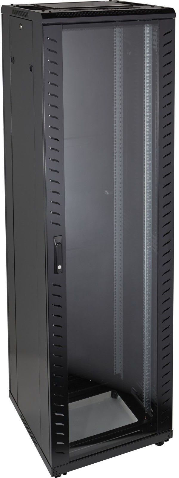 Lattiakaappi 19" 2070x600x600 42U lasiovella, musta