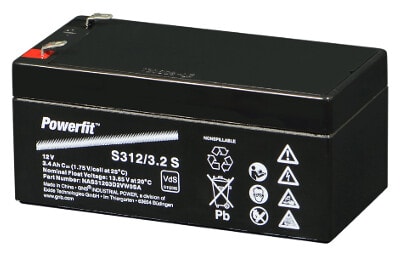 Powerfit S312/3.2 S (faston s-4.8)on agm-akku paikalliskäyttöön.12V/3.4Ah