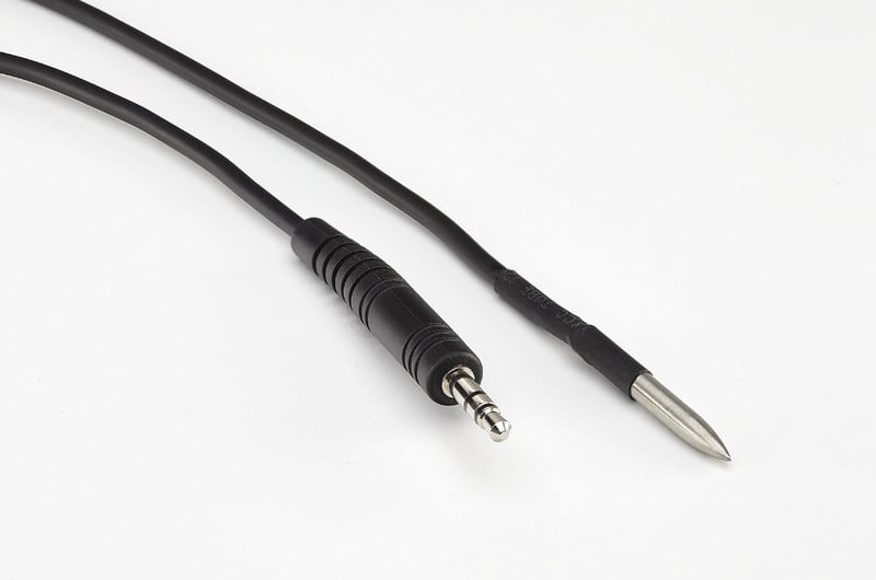 Extech TP830: Ruostumattomasta teräksestä valmistettu 2 cm pitkä lämpötila-anturi 1 m kaapelilla.