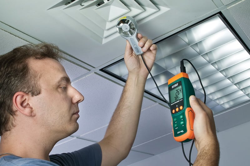 Extech SDL300 Termoanemometri/dataloggeri metallisella siipipyörällä. SDL300 tallentaa mittausarvot SD-muistikortille Excel luettavassa formaatissa.