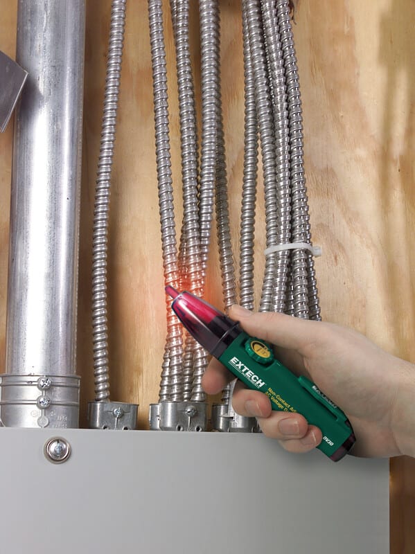 Extech DV30: Kosketukseton jännitteenkoetin säädettävällä herkkyydellä. DV30 on NCV jännitteenkoetin joka tunnistaa 12 - 600V AC jännitteen koskettamatta kohdetta ja ilmoittaa jännitteestä LED merkkivalolla sekä äänimerkillä.