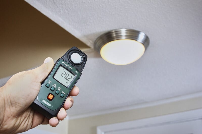 - Mittaa valkoisten Ledien ja perinteisten valonlähteiden valaistusvoimakkuus lukseina (lux) tai jalkakynttilöinä (Fc)