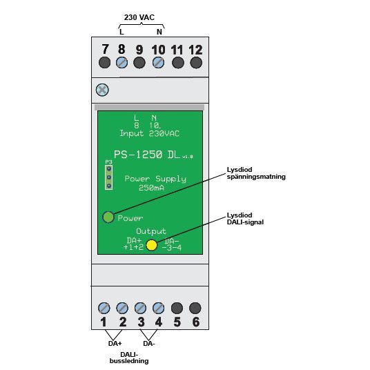 Yhden DALI-väylän tehonsyöttöön 250mA.